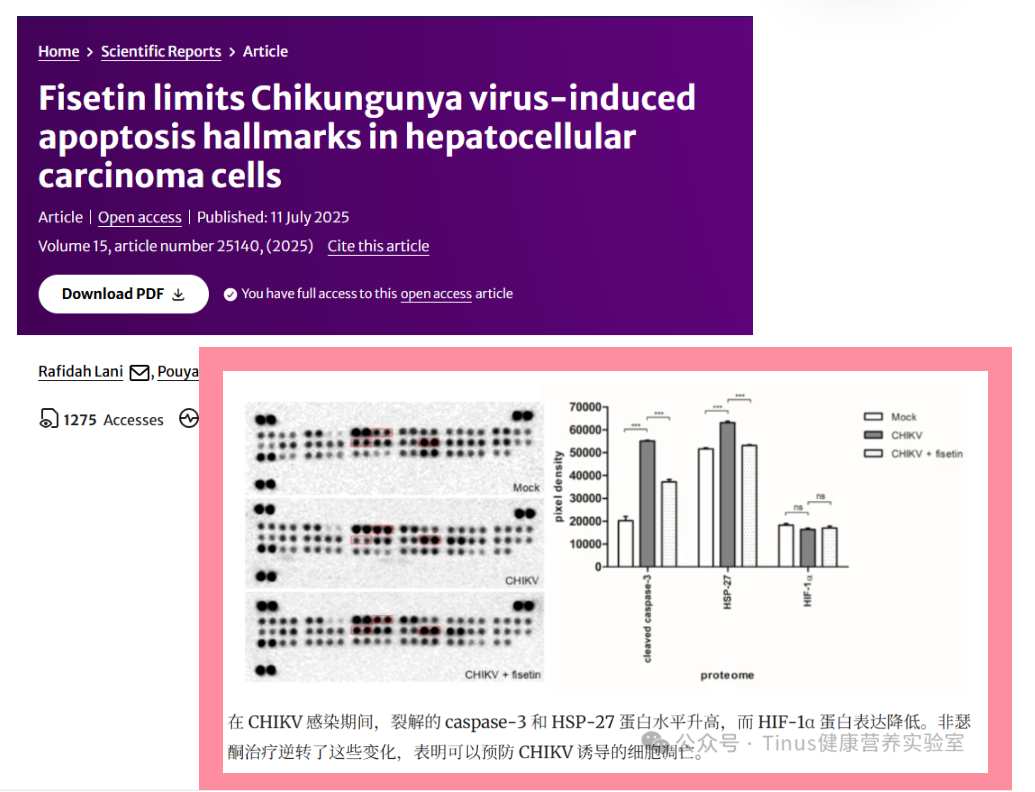8. Lani, R., Hassandarvish, P. & AbuBakar, S. Fisetin limits Chikungunya virus-induced apoptosis hallmarks in hepatocellular carcinoma cells. Sci Rep 15, 25140 (2025).